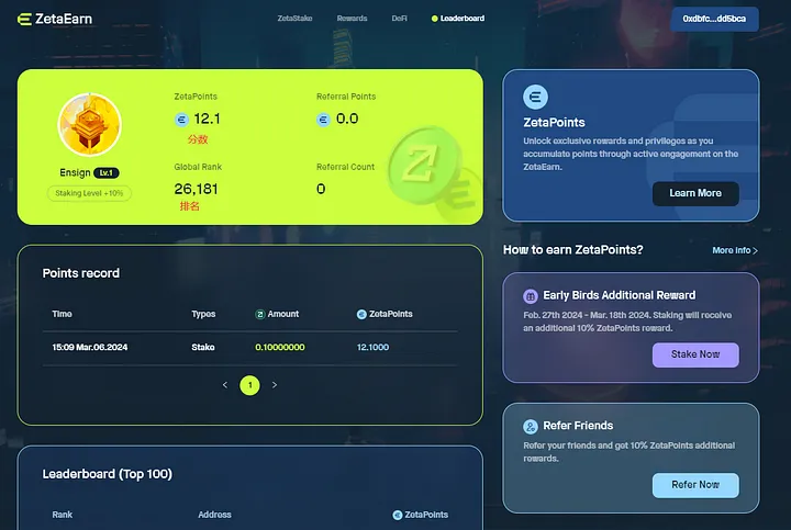 打开https://app.zetaearn.com/,选择MetaMask钱包进行连接