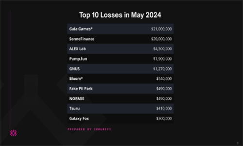Immunefi的最新报告详细剖析了5月份的安全事件,指出其中大部分损失源于两起严重的安全攻击。第一起是针对知名的Web3游戏协议Gala Games的网络攻击,此次事件导致了约2100万美元的资金损失。第二起则是针对Sonne Finance的一次智能合约安全漏洞利用,该事件带来的损失也高达2000万美元。这两起攻击事件合计造成了当月总损失的78%。