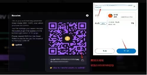 第三步:进入opbnb链,并在opbnb链上充值10u的bnb,可以签到一个月铸造(Mint)Carv id。随便点一下图的任务,这个时候系统就会让你先Mint Carv id,点Top up BNB,这时会跳出来个收币地址,你把价值0.6u左右的bnb转到对应的地址上,下图中total后面的值。需要从opbnb链上转账。