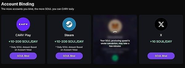 另外还可以在CARV Play完成各种游戏任务,赚取额外的SOUL收益。