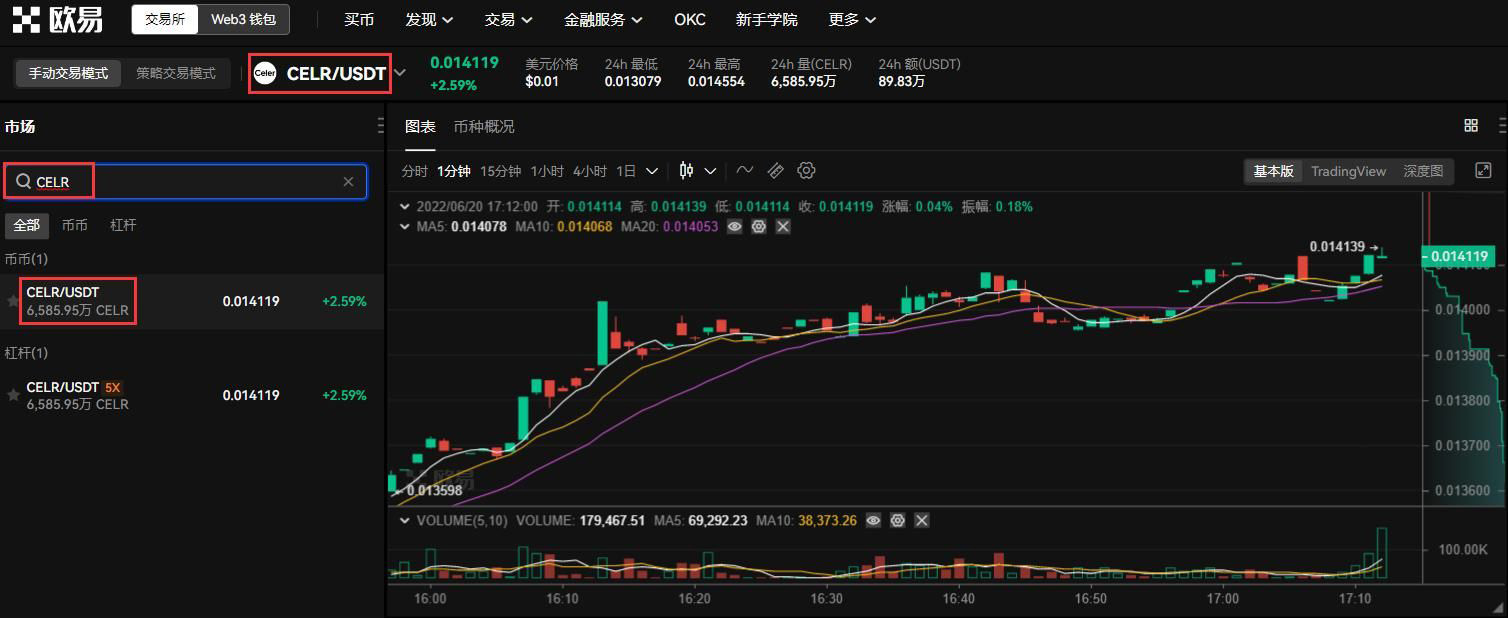 CELR币已经上架了币安、欧易OKX等交易所,今天币圈子小编就以在欧易交易所为例,为广大投资者介绍CELR币买入和交易教程图解,详细步骤如下: