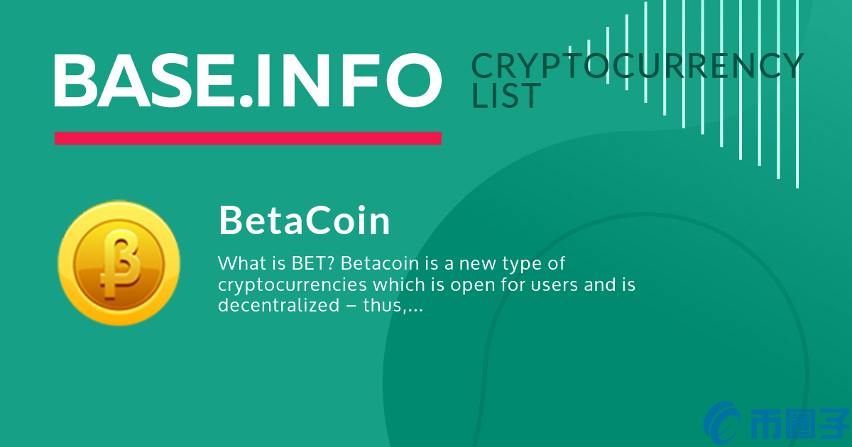 什么是Betacoin?Betacoin,简称BET,bet币,betacoin是一种开放的分散加密货币。任何有兴趣的人都可以加入betacoin网络并参与货币开发。除了互联网,betacoin本质上是国际性的。