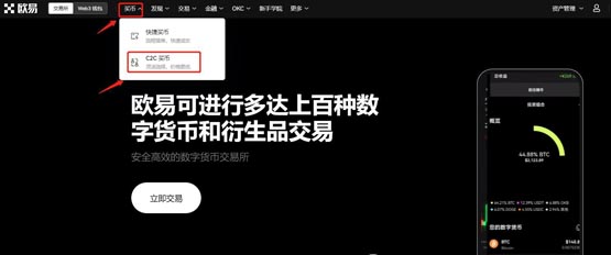4.注册以及认证完成之后即可进行交易,在首页点击【买币】进入【C2C买币】页面