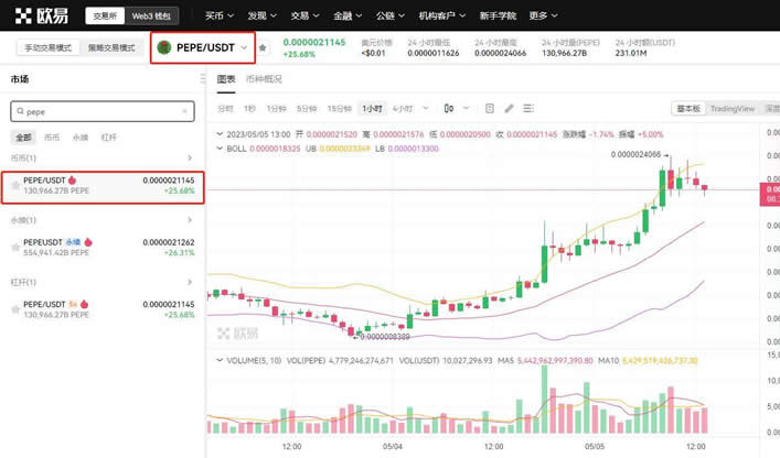 目前PEPE币已经上架了18家数字货币交易所,下面小编以欧易OKX交易所为例,为大家详细介绍PEPE币买入教程: