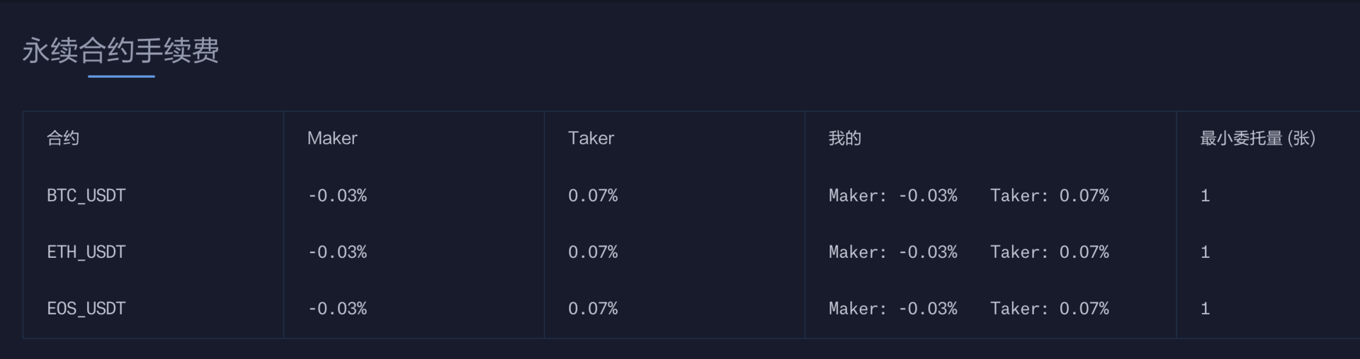 Bit-Z平台目前的合约交易手续费率如下:您可以登录Bit-Z查询您的永续合约手续费。
