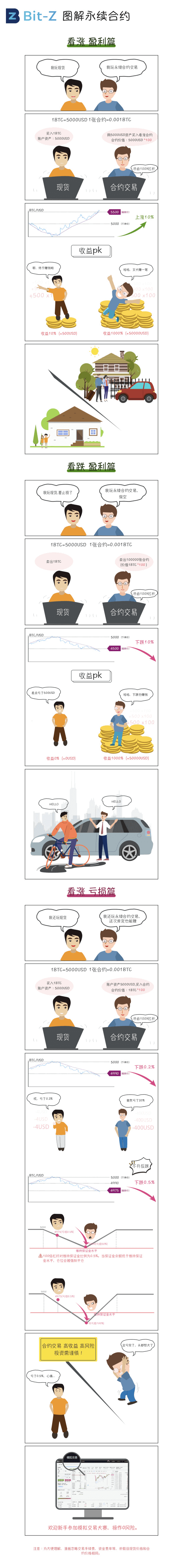 Bit-Z 提供的永续合约是⼀种适合虚拟货币的⾦融衍⽣品。