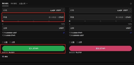 9、填写买入数量,点击【买入ETHFI】即可完成ETHFI币交易