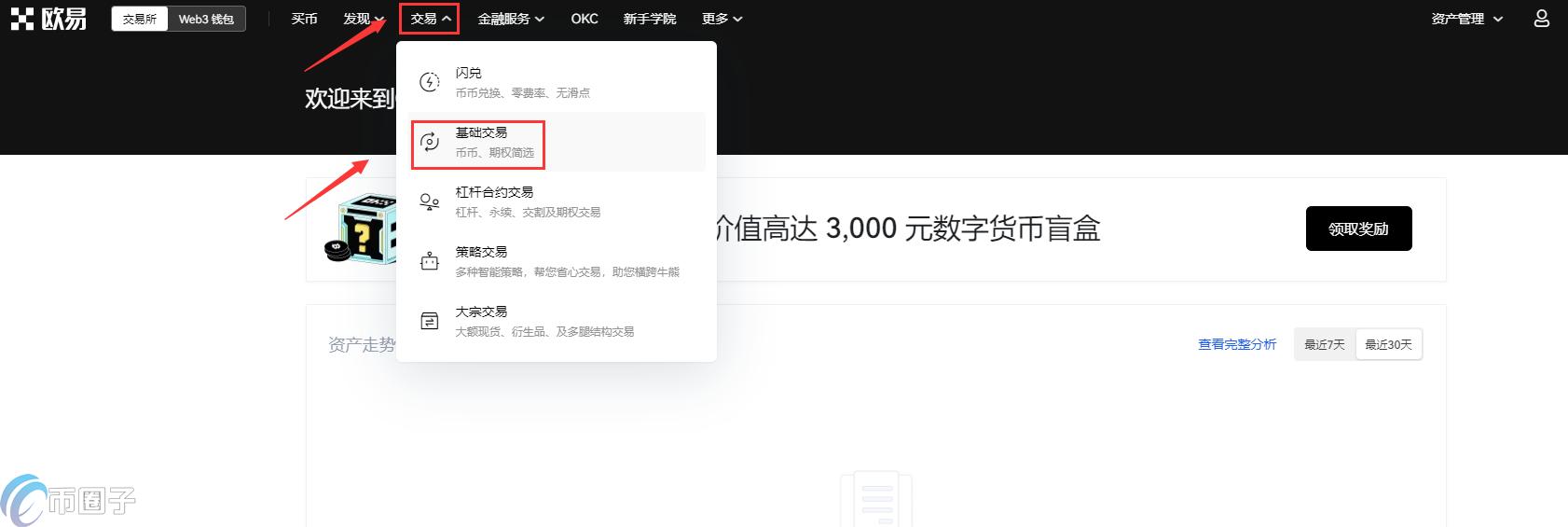 4.完成身份认证后裔,在首页点击交易——基础交易,进入交易页面