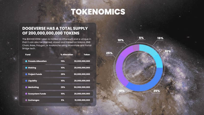 Dogeverse 的代币经济学旨在为该计画提供资金并奖励支持其发展的参与者,同时确保生态系统的长期稳定性。