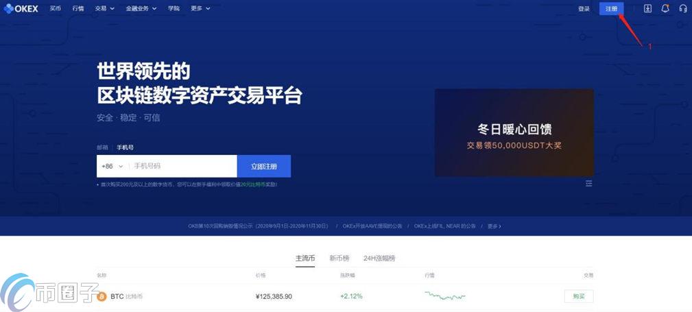 1. 打开欧易OKX官网,没有账号可以点击注册一个账号,点击右上角即可进入注册页面。