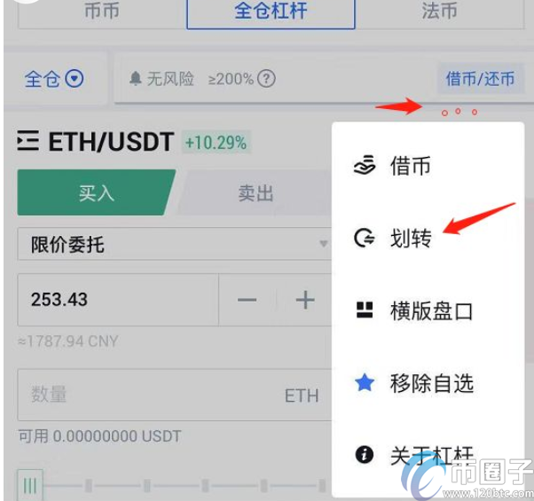 3.点击资金划转,全仓杠杆所有支持担保资产的币均可转入成为本金.