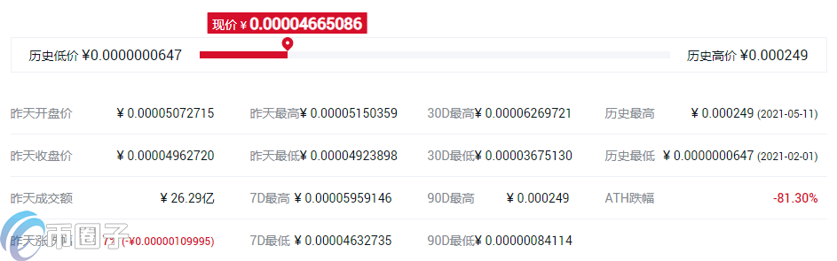 2.柴犬币的历史最低价格出现在2021年02月01日,最低价跌到了0.00000001美元。