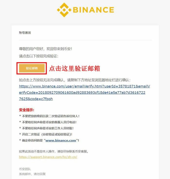 打开注册邮箱,点击“验证邮箱”,即可完成币安注册;