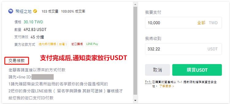注意:建议找成交量大,信誉高的商家。订单必须在指定时间内内完成支付(通常为15分钟),下单之后如果取消订单,则当天无法交易,建议确认好之后再下单。