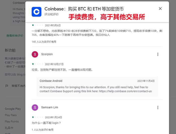 六.Coinbase用户评价/PTT评价/Google Play评价