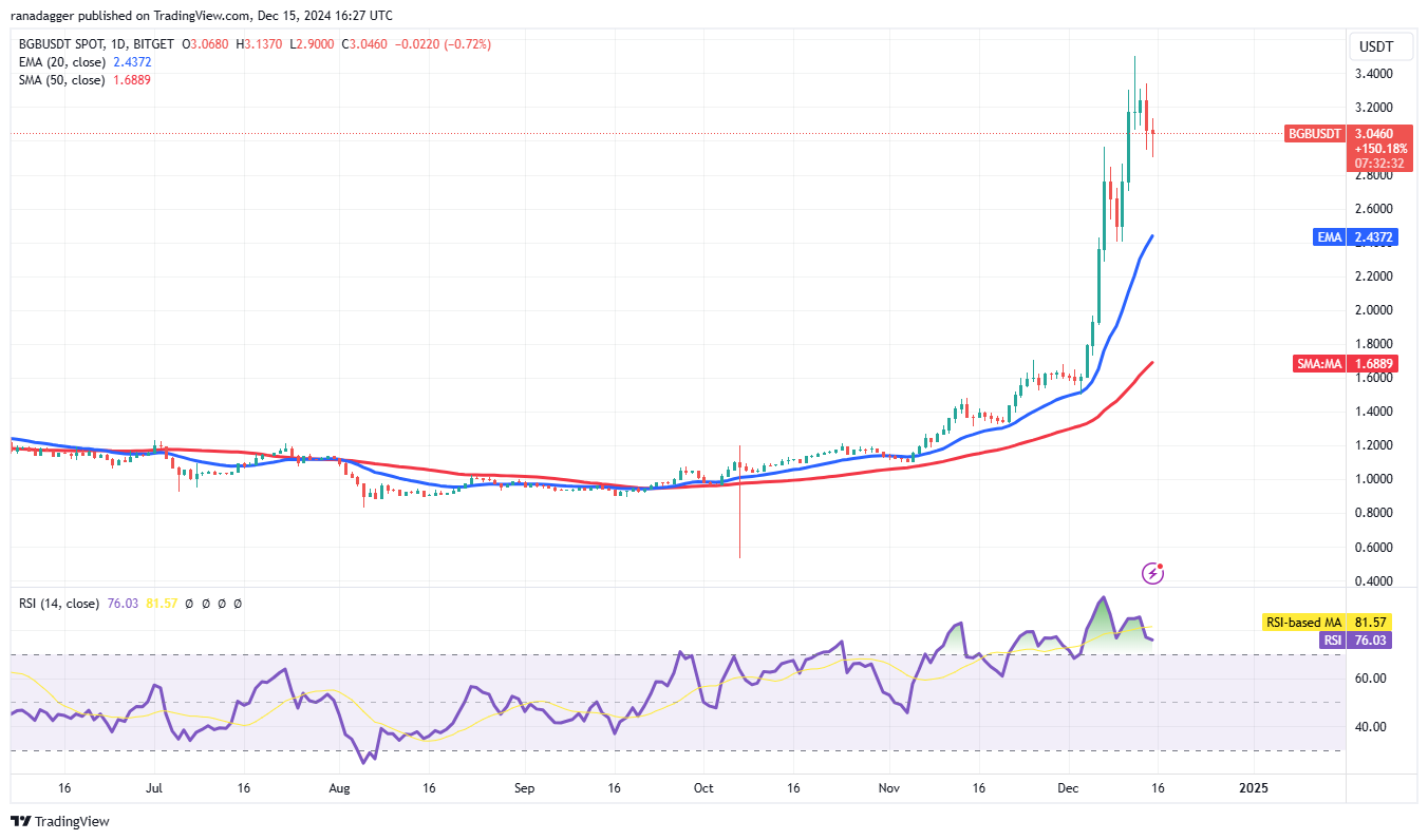 Upadhyay指出,Bitget Token($BGB)一直处于强劲上涨趋势中,但在12 月12 日从3.50 美元高点回调,代表多头正在获利了结。