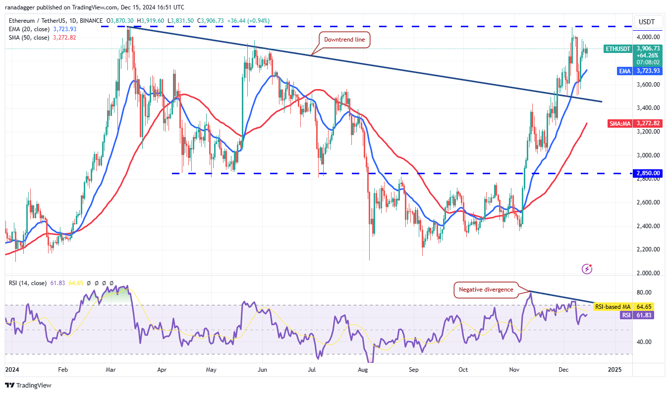 不过,如果以太币能从目前点位或20日EMA 反弹,就代表市场情绪乐观,并提高突破4,094 美元的可能性。若成功突破该点位,接下来可能会飙至4,500 美元。