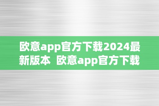 欧意app官方下载2024最新版本 欧意app官方下载2024最新版本及欧意官网下载
