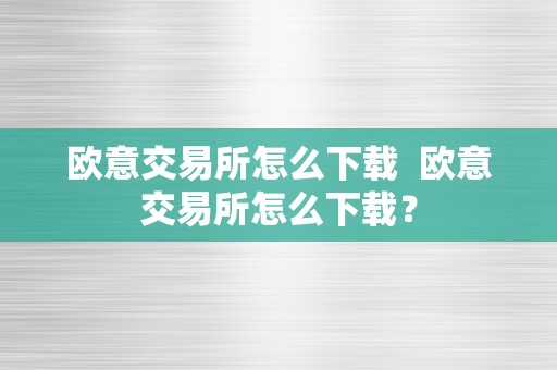 欧意交易所怎么下载 欧意交易所怎么下载?