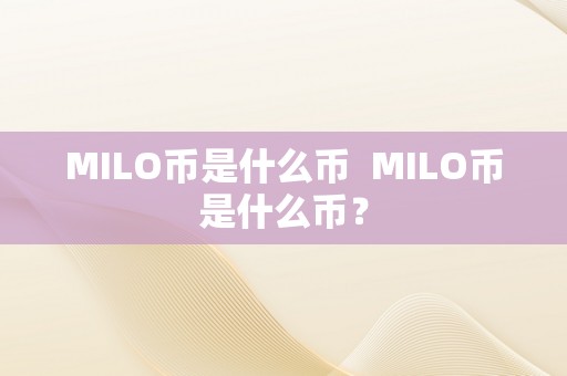 MILO币是什么币 MILO币是什么币?