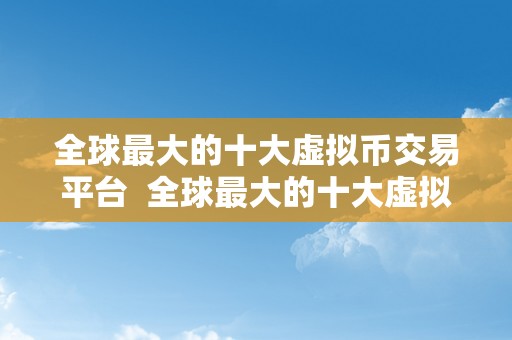 全球最大的十大虚拟币交易平台 全球最大的十大虚拟币交易平台