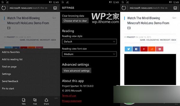 微软已经推送Win10 Mobile预览版10136系统更新,包含一些新功能和性能提升。正如之前预期的那样,在Win10手机版10136中,微软Edge浏览器(Project Spartan)带来新的特性,包括暗黑模式。