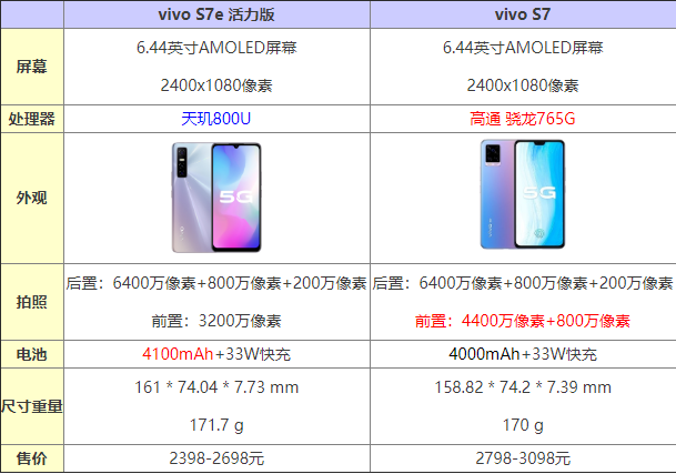 vivoS7e活力版对比vivoS7哪款更值得入手