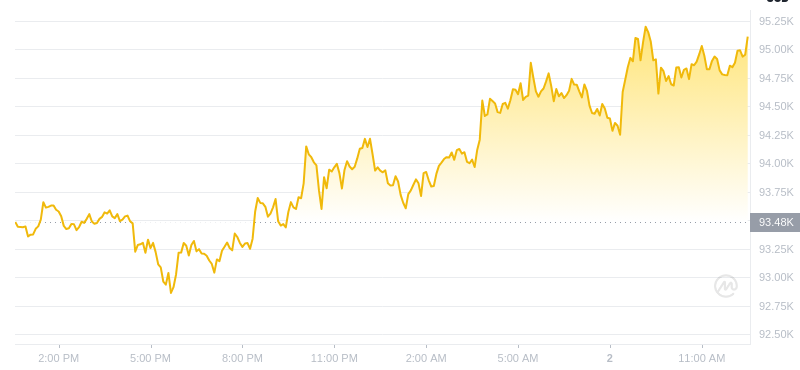 截至 2025 年 1 月 2 日 12 时,比特币 (BTC) 价格为 95,108 美元。过去 24 小时内交易量高达 276 亿美元。