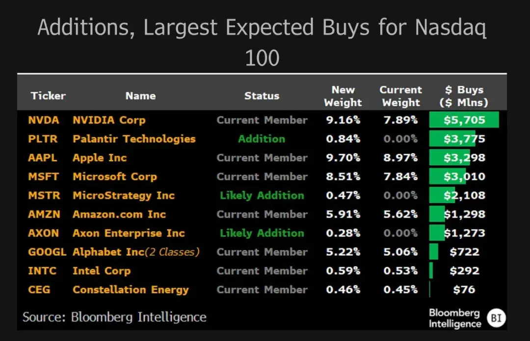 纳斯达克100指数以及 QQQ 和相关 ETF 的重组结果将于 12 月 23日开市前生效。
