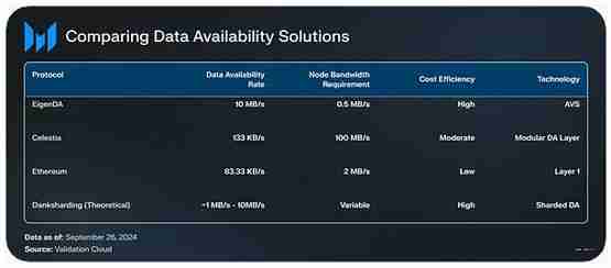 EigenDA 由 EigenLabs 开发,是第一个在 EigenLayer 上推出的主动验证服务 (AVS)。它的工作原理与其他数据可用性 (DA) 层(例如 Celestia 或 NearDA)类似,利用 EigenDA 的Rollup可以享受更低的费用和更高的吞吐量