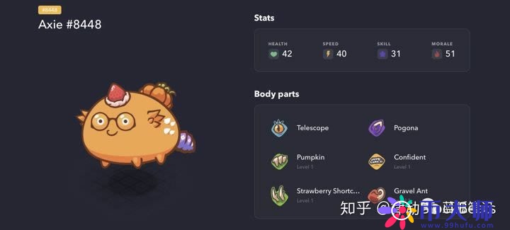 (Axie 具有不同的属性和身体部分,Source:Axie Infinity)