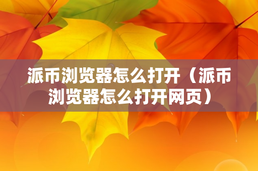 派币浏览器怎么打开(派币浏览器怎么打开网页)