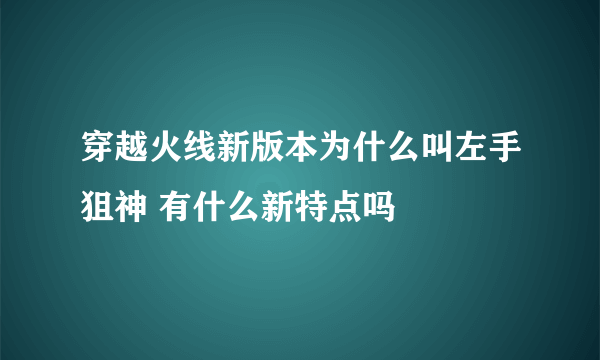 穿越火线新版本为什么叫左手狙神 有什么新特点吗