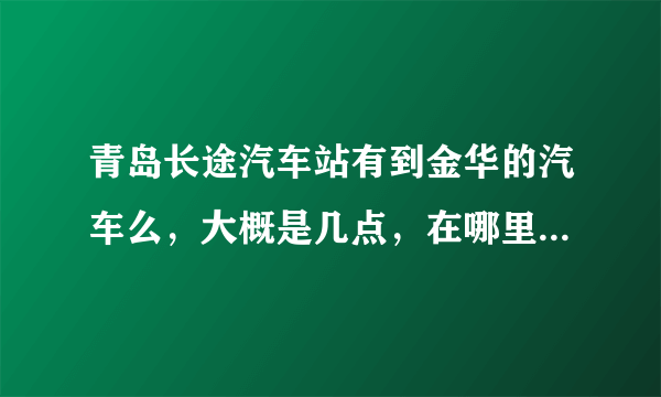 青岛长途汽车站有到金华的汽车么,大概是几点,在哪里出发,有司机的联系电话咩 更新时间:2024-05-08 09:48:55 •阅读 0 青岛长途汽车站有到金华的汽车么,大概是几点,在哪里出发,有司机的联系电话咩的有关信息介绍如下: 有,大概是一点发车,但不进四方站貌似,是在别的汽车站发车