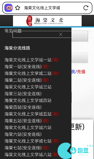 3、选择合适的链接线路,点击就能直接进入其他海棠小说网入口。
