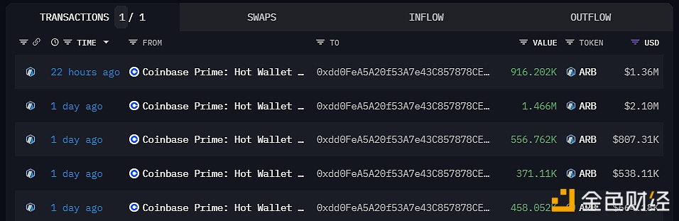新地址从Coinbase提取377万枚ARB,ARB转移量不断增加