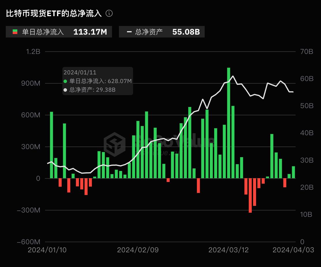 比特币现货ETF昨日总净流入1.13亿美元,富达ETF单日净流入1.16亿美元