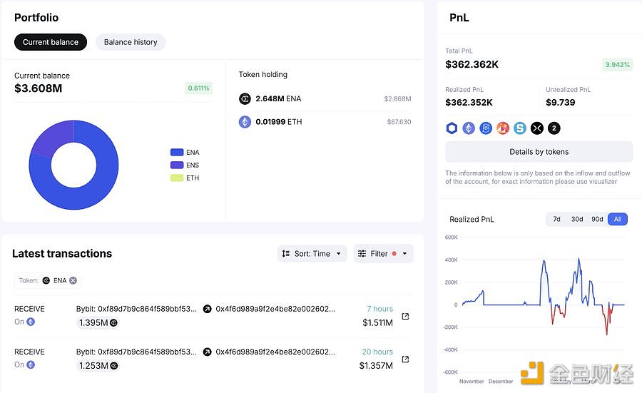 某巨鲸过去20小时里6从Bybit提取265万枚ENA