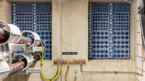 Roxtec的密封系统具有非常高的灵活性和可调整性,能够适应不同规格和类型的管道及缆。在这次苏黎世机场的项目中,使用到的产品是 Roxtec GH 穿隔系统。在建筑密封系统中装有我们的密封模块,得益于可剥橡胶芯层的MultidiameterTM技术,这些模块可轻松适配不同尺寸的电缆和管道。这意味着在安装过程中可以大大减少对原有结构的改动,节省时间和成本。