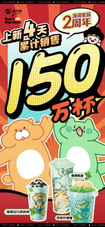 据益禾堂官方数据统计显示,薄荷白巧奥利奥、薄荷柠檬桶加上经典的薄荷奶绿,这三款薄荷系列饮品,上市仅4天,已售150万杯 !