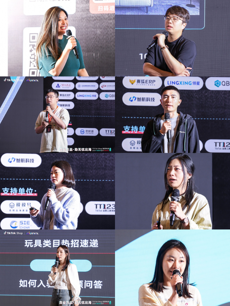 活动现场,TikTok Shop跨境电商家电类目负责人 滕慕帆、家居日用招商经理 霍建桦、家纺布艺招商经理 刘鑫、运动户外招商经理 陈永阔、汽摩配招商经理 李思奇、运动服饰招商经理 王婷、宠物用品招商经理 黄天丽、TikTok Shop东南亚跨境家居行业经理 颜妍以其专业的洞察力和丰富的实战经验,为与会人员深度剖析了TikTok Shop跨境电商平台在各自赛道的发展趋势与机遇。整场活动干货满满,各招商经理的精彩分享不仅让在场卖家对各自赛道有了更深入的理解,也对未来在TikTok Shop平台上开展跨境电商业务充满了信心与期待,赢得好评无数。
