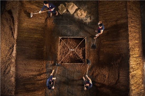 五粮液的酿酒工匠们采用最地道的传统酿造技艺,把多年学习积累而来的酿酒技艺,娴熟地运用在每一道酿酒工序上;他们技艺精湛,经验丰富,闻一闻窖房内香气,抓一把糟醅尝尝,就能知道产酒好不好,可谓是白酒酿造界大隐隐于市的“高手”……