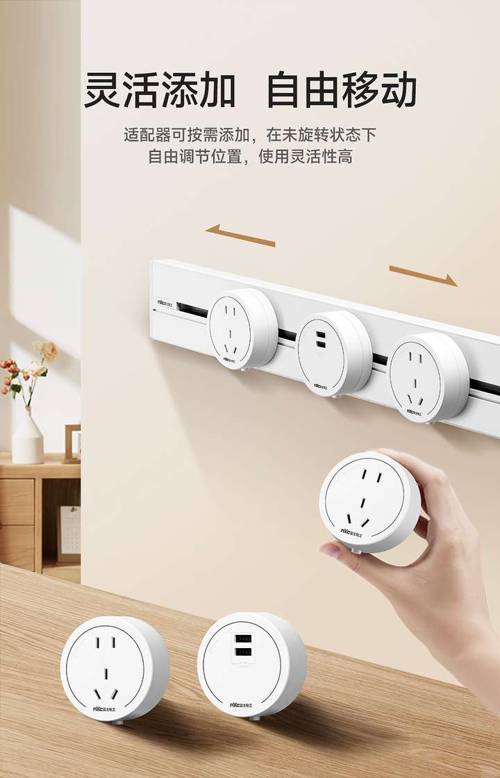 此外,NVC雷士电工轨道插座具有“可移动”的优势,它轨道够长,能随心所欲地在轨道上滑动,插座数量可随需增减,再也不用为留的插座少而发愁,加上距离可调,完美解决了电线较短的难题。