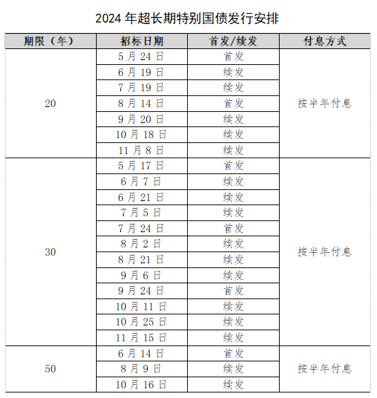 财政部发布2024年一般国债、超长期特别国债发行有关安排 更新时间:2024-05-13 12:59:08 •阅读 0 财政部公布2024年一般国债、超长期特别国债发行有关安排的通知,其中超长期特别国债涉及期限为20年、30年、50年。 校对:祝甜婷