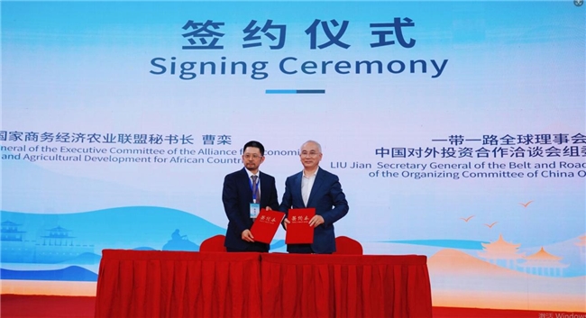 合作谋共赢,携手创未来。签约仪式上,非洲国家商务经济农业联盟秘书长曹栾与中国产业海外发展协会副会长、中国对外投资合作洽谈会组委会执行秘书长高佳佳针对后期举办的洽谈会和论坛签署合作备忘录;非洲国家商务经济农业联盟秘书长曹栾与一带一路全球理事会秘书长、中国对外投资合作洽谈会组委会副主席刘剑就“全球数贸港项目落地布基纳法索”事宜签署合作备忘录;运鸿集团股份有限公司副总经理魏杨与东风汽车股份有限公司高级商务代表武向东以“共同开拓海外市场项目”签署战略意向书。