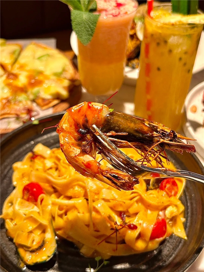 接下来的冬阴功海鲜意面则是一次味蕾的全新冒险。冬阴功汤底的酸辣与意面的融合,既保留了传统冬阴功的鲜明特色,又巧妙地加入了西式面食的元素,海鲜的加入更是锦上添花,使得整道菜口感层次丰富,酸辣开胃,让人忍不住一口接一口。