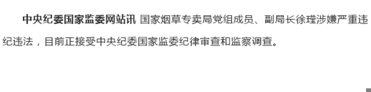 国家烟草专卖局党组成员、副局长接受中央纪委国家监委纪律审查和监察调查 更新时间:2024-05-25 15:59:12 •阅读 0 国家烟草专卖局党组成员、副局长接受中央纪委国家监委纪律审查和监察调查。 校对:王锦程