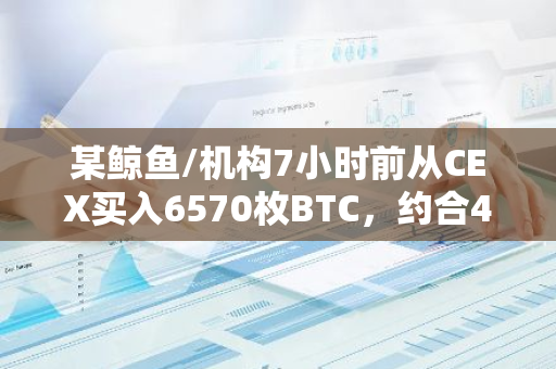 某鲸鱼/机构7小时前从CEX买入6570枚BTC,约合4.27亿美元