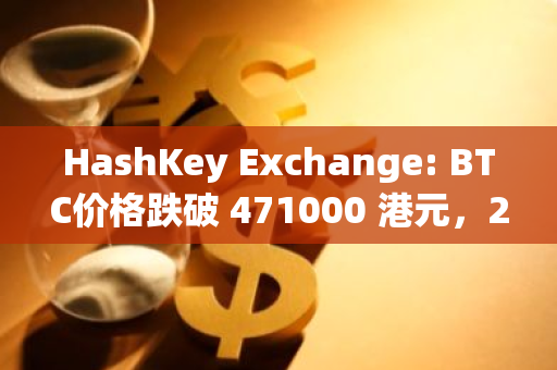 HashKey Exchange: BTC价格跌破 471000 港元,24小时跌幅 -5.75%