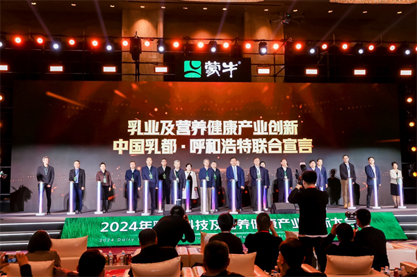 当天,蒙牛还携手科研生态圈及上下游企业共同发布《乳业及营养健康产业创新 中国乳都·呼和浩特联合宣言》。宣言提出,各方将以创新驱动,坚守品质、营养、绿色与合作理念,为乳业及营养健康产业的璀璨明天奋勇前行,铸就人类健康事业的光辉未来。